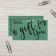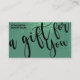 This is the perfect gift certificate business card for a trendy, stylish, girly, and modern businesswoman. This design features a simple black handwritten brush script typography on a faux printed sparkly mermaid teal glitter and mermaid green ombre gradient glamorous and chic background. It's the perfect way to allow your customers to buy a gift for their family and friends and at the same time promote your business.