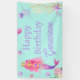 Transform your party space with this enchanting mermaid birthday banner! Featuring a whimsical mermaid with pink hair and vibrant purple writing, it can also be customized with the birthday child's name. It's the perfect backdrop for an unforgettable under-the-sea celebration!