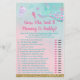 These adorable Guess Who Said It Mommy Or Daddy game cards are a fun Baby Shower activity. Simply pass them around during the Baby Shower where guests will have fun guessing who said each statement-Mommy or Daddy. The design features a colorful mermaid tail with faux gold glitter embellishments.