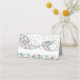 Whimsical mermaid theme place card featuring a cute mermaid tail and underwater creatures, corals and foliage