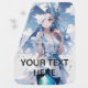 Pretty mermaid wearing a blue and white dress with long blue hair. With your customized text or none.