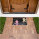 This Merry Christmas holiday doormat features a beautiful mermaid in pink wearing a Santa hat. She is sitting on a rock with a full moon and silhouette of Santa, his sleigh and reindeer in the background.