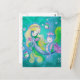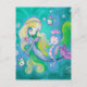 An original painting in acrylics entitled:: "The Mermaid's Sea Horse." A pretty mermaid floats in the aqua blue water, conversing with her pet and best friend, a beautiful pink and blue sea horse. She has pearls in her long blonde hair. Her fish tail is navy blue. She is accompanied by two cute little fish.