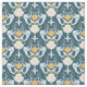 Modeled on old damask wallpaper this pattern features illustrations of mermaids and seashells in white and mustard gold set against a dark teal blue background. It's perfect for crafting projects for fans of mermaids.
