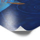 Print featuring surreal artwork titled "The Waiting". Three beautiful mermaids / girls’ statues frozen in the long waiting for something that turns them back to life. Girls are covered by blue corals and blue, green and purple seaweeds. Bunch of golden fishes swimming between them. Dark blue water and remote fish silhouettes as a background. Underwater / nautical theme, contemporary art, 2015