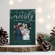 Elegant holiday photo cards for newlyweds feature a favorite square wedding photo on a rich hunter green background, with "Merrily Ever After" in white calligraphy script. Personalize with your names or custom greeting beneath. A tonal snowflake border completes the look. Perfect for sharing a wedding photo for your first married Christmas.