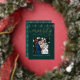 Elegant holiday photo cards for newlyweds feature a favorite square wedding photo on a rich hunter green background, with "Merrily Ever After" in luxe gold foil calligraphy script. Personalize with your names or custom greeting beneath. A tonal snowflake border completes the look. Perfect for sharing a wedding photo for your first married Christmas.