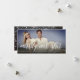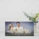 This modern and simple holiday/christmas wedding announcement 8" x 4" card features the word 'Merrily Ever After' in a trendy script calligraphy overlaying a full bleed photo.