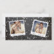 The back of the card features 2 snapshot photos on a black chalkboard with white snowdots pattern.