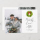 Rustic and modern wedding announcement card for the holiday season featuring a watercolor illustration of a Christmas wreath with a red bow. The text says "Merrily Ever After." You can add a 2nd picture on the back of the card along with your message. Perfect Christmas wedding announcement card!