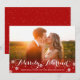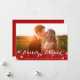 Featuring snowflakes, this festive holiday card is perfect for newlyweds. Says "Merrily Married" in script.