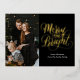 Merry and Bright Black Gold Calligraphy Photo Foil Holiday Postcard