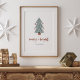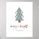 This simple holiday poster features a green, boho style Christmas tree, with casual terracotta script that says "merry + bright" on a white background. Add your family name for the perfect keepsake.