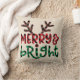 Rustic Merry and Bright Buffalo Plaid Christmas Throw Pillow with Deer Horns