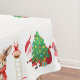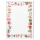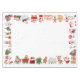 The "Merry and Bright Christmas" small tablecloth on a white background, features a festive design with an array of Christmas decorations, including elves, Santa's, and more, adorning the border. The center of the tablecloth is kept clear, making it perfect for placing placemats, trivets, and other holiday items. This design ensures your table remains both decorative and functional for all your Christmas gatherings.