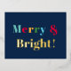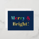 Introducing our Merry and Bright Custom Blue Creative Design Foil Holiday Postcard! This festive and colorful holiday card is designed to spread joy and cheer during the holiday season. With a touch of gold foil for the word "bright," this postcard exudes a sense of elegance and celebration.
