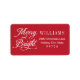 Elegant white "Merry and Bright" script brings cheerful holiday charm to this vibrant red return address label. Refined serif typography keeps the design timeless and festive. Personalize with your family name and address for Christmas card mailings. A classic finish for every holiday envelope.