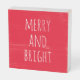 Merry and Bright Farmhouse Style Christmas Red Wooden Box Sign