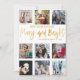 Merry and Bright Gold Script Photo Collage Holiday Card