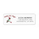 Cute Merry and Bright return address label featuring a hand-painted Ruby-throated Hummingbird wearing a Santa hat.