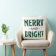 Seasonal Christmas throw pillow features "Merry and Bright" modern typography design patterned in a rustic green and black buffalo check / plaid. A coordinating buffalo check pattern dresses up the back of the pillow design.