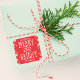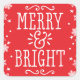 Holiday sticker / envelope seal design features "Merry & Bright" text white with an accent border of winter snowflakes and stars and red background that can be customized.