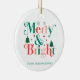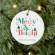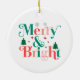 Merry And Bright Pine Tree Snowflakes Ceramic Ornament
