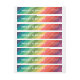 Modern and colorful Christmas holiday return address labels feature "Merry & Bright" text in white sans serif text paired with a bold background pattern of diagonal rainbow stripes. Personalize with your return address wording.