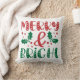 Merry and Bright Red and Green Holly Christmas Throw Pillow.