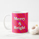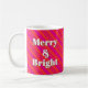 Be "Merry & Bright" with every hot drink! This festive Christmas mug displays a vibrant candy stripe pattern in bright red and bold magenta pink. Featuring the classic phrase "Merry & Bright" in a stylish, modern font, it brings a cozy and festive flourish to your tea, coffee or hot chocolate. On the back is a 'banner' to personalize with a name, making it an ideal stocking stuffer, Secret Santa gift, or cheerful treat for cozy winter afternoons.
