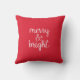Merry and Bright Red Christmas Holiday Pillow