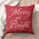 Merry and Bright Red Script Holiday Throw Pillow