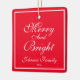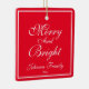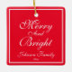 "Merry And Bright' Script Name Chic Red Christmas Ceramic Ornament