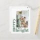 Merry and Bright Simple Photo Sage Green Christmas Postcard