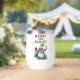 A funny and cheerful Christmas design showcases a jolly snowman dressed in a long green coat with a matching top hat, red scarf, and mittens. He holds a glass of red wine in one hand and white wine in the other. The festive red and green text reads, "Merry and bright." This design is available on a variety of products, making it a perfect gift for wine lovers.