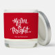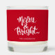 Delight in the festive essence of the season with our Merry and Bright Typography Script Red Scented Candle. Designed to evoke a sense of warmth, joy, and elegance, this beautifully crafted candle boasts a delightful red background adorned with graceful calligraphy script. Enhance any space with the enchanting flicker of the candlelight, casting a soft glow that illuminates your surroundings with merriment. Immerse yourself in the luscious fragrance, merging joyful, aromatic notes that create a blissful and relaxing ambiance. Illuminate your home with the magic of the holidays and indulge in the captivating allure of this enchanting scented candle.