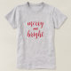 A Christmas tee for women featuring modern script typography "Merry and Bright".