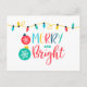 A fun loving design with a string of lights above handwritten typography words Merry and Bright by Ness Nordberg, complimented by some Christmas Ornaments with snowflake decorations. All artworks © Ness Nordberg. All rights reserved worldwide. The unauthorized reproduction or distribution of a copyrighted work is illegal.