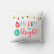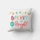 Merry and Bright with a string of lights Throw Pillow