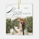 Merry & Married Christmas photo ornament which you can personalize with your favorite photo and persoanlized wording. Elegant typographic design with swirly calligraphy and easy to edit for a married couple. This holiday ornament is lettered with Merry & Married on one side and editable text on the other. The sample text reads "our first christmas as Mr & Mrs [last name] loving life as husband and wife since [wedding date]". All the text, except Merry & Married and Mr & Mrs is editable.