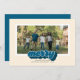 Merry Blue Retro Script Christmas Photo Holiday Card
