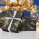 Christmas themed botanicals including pine and spruce boughs fall gently across this beautiful, unique black and gold wrapping paper. The faux gold shimmer effect pops against a soft black chalkboard texture.