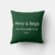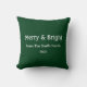 Merry & Bright Christmas Custom Name Hunter Green Throw Pillow