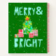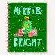 A bright Christmas tree adorned with colorful ornaments is surrounded by pink and red gifts just waiting to be opened. This design features the phrase "Merry & Bright." | Blanckslate | 141050D