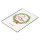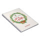A personalized Christmas notebook with a watercolor wreath. Green pine needles, pine cones and decorative berries make up this festive wreath. Inside the wreath are some decorative ornaments and the words" may your days be Merry & Bright. Written in a trendy red font.