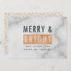 Merry & bright geometric copper and marble corporate business holiday card. Marble and copper / rose gold effect design.