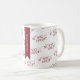 Modern Seasonal Christmas coffee mug design in festive red and white colors, featuring elegant 'Merry and Bright' typography pattern and a minimal red ribbon with space for your name or custom text - the perfect stocking filler or gift for a loved one.