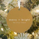 Simple, stylish, trendy "merry + bright" holiday tree ornament with modern minimalist typography in white on a ochre mustard yellow background. The greeting, name and year can be easily customized for a personal touch. A quirky, unique design to stand out from the crowd!