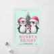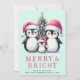 Merry & Bright Penguins Family Pink Mint Christmas Holiday Card