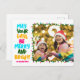 Merry Bright Pink Blue Christmas Lights Photo Holiday Postcard